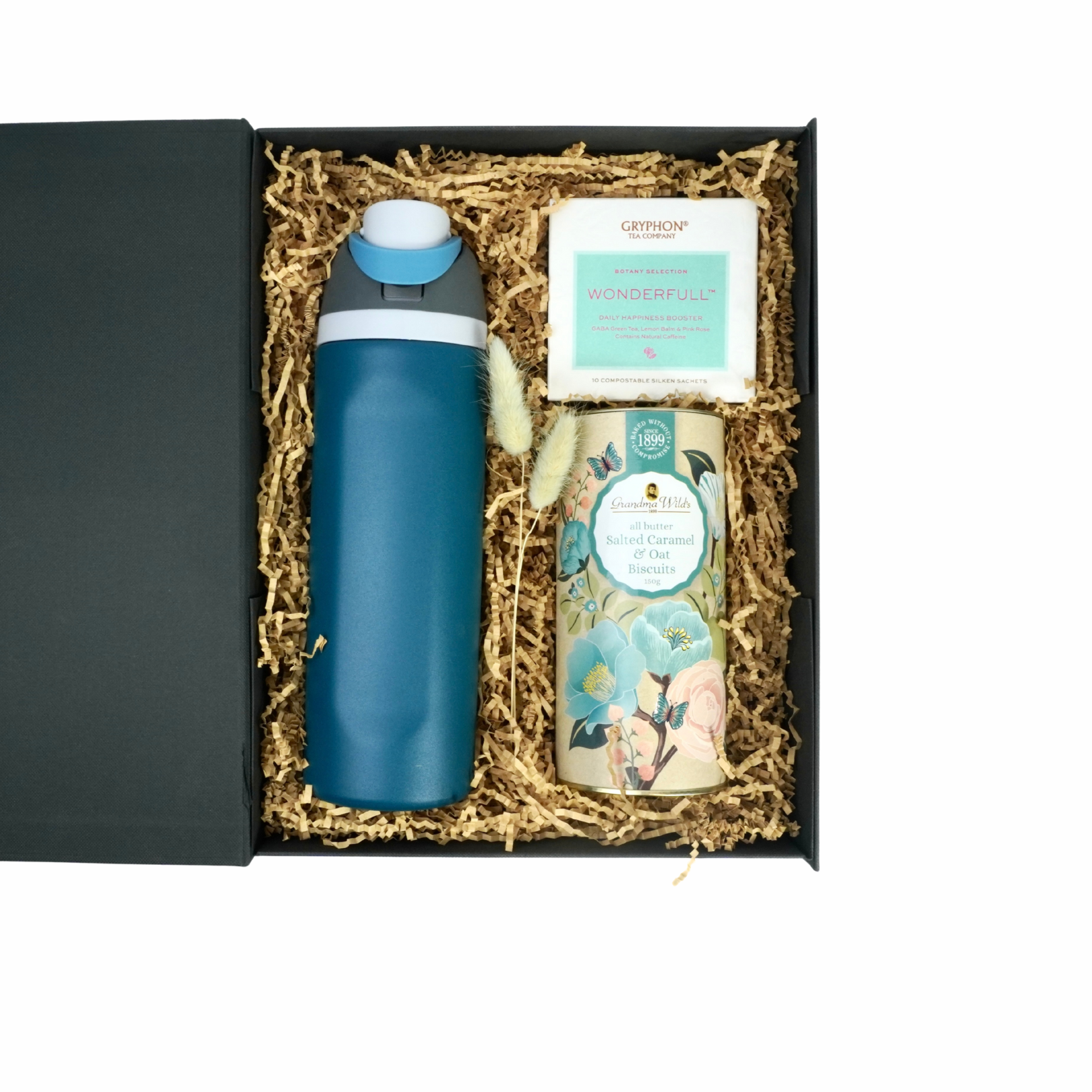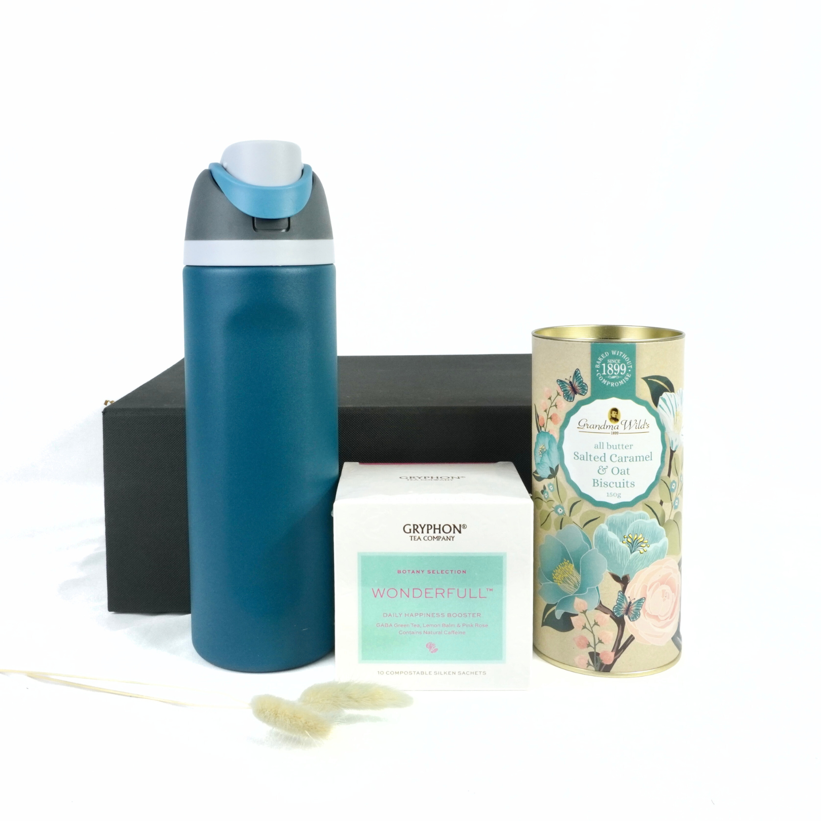 Take a well-deserved pause with this comforting set, perfect for slow mornings or cozy afternoons. Featuring Gryphon’s Wonderfull® tea, a beautiful tin of Grandma Wild’s Salted Caramel & Oat Biscuits, and a sleek Sip or Swig bottle to enjoy your favourite drinks on the go. Thoughtfully packed for those who love to sip, snack, and savour little moments of calm, wherever they are.