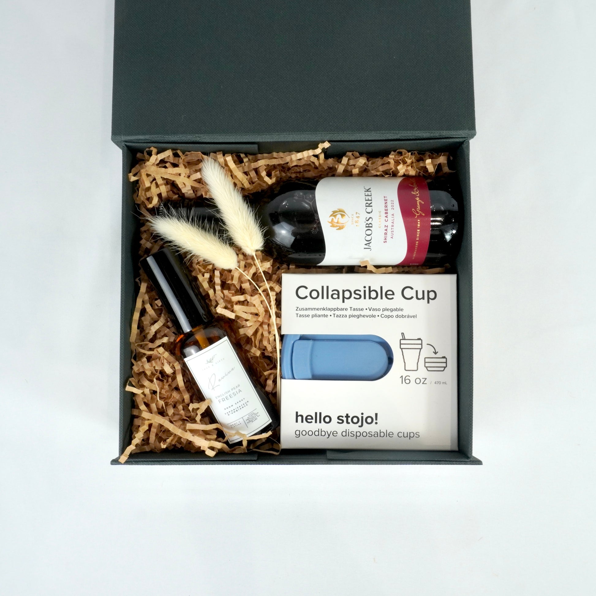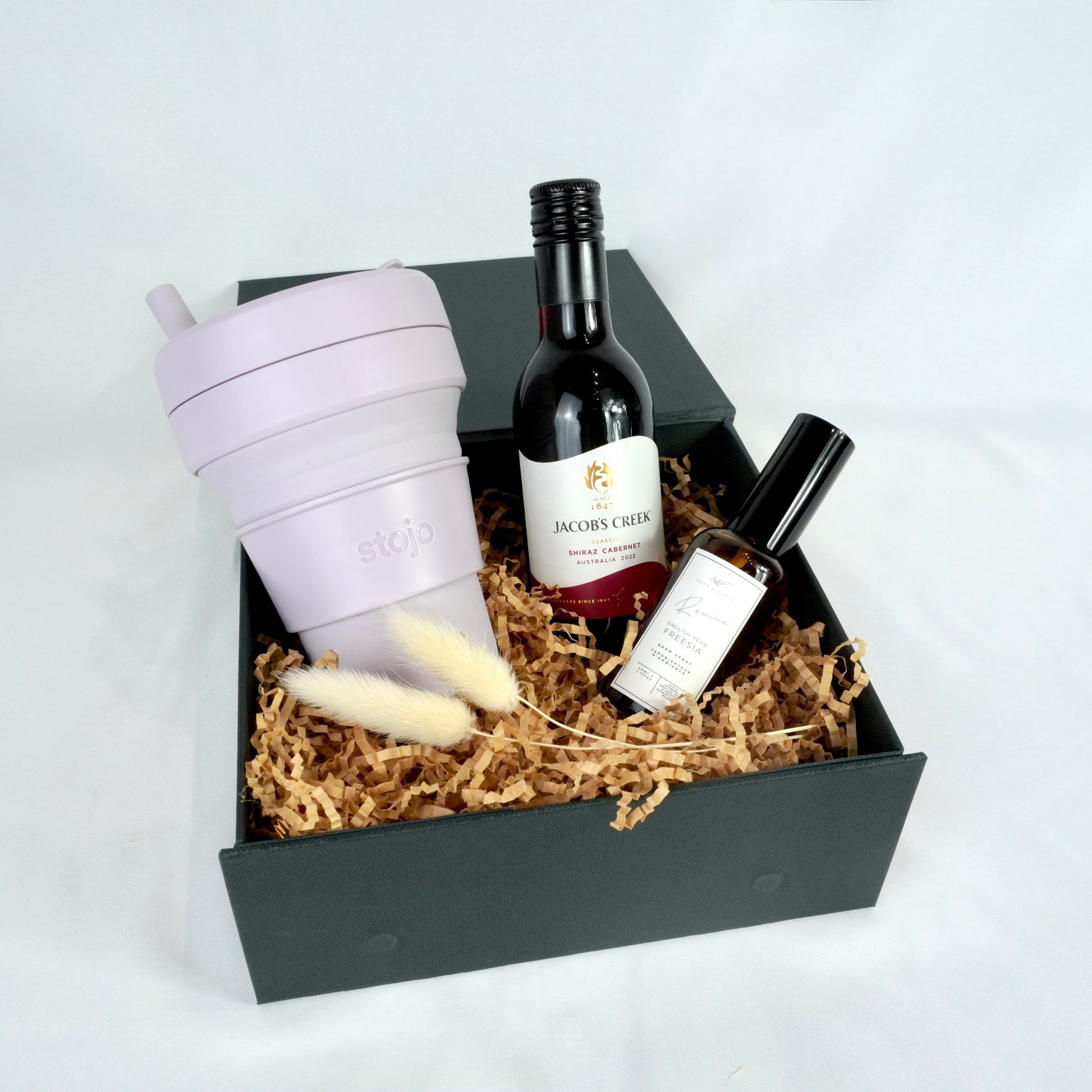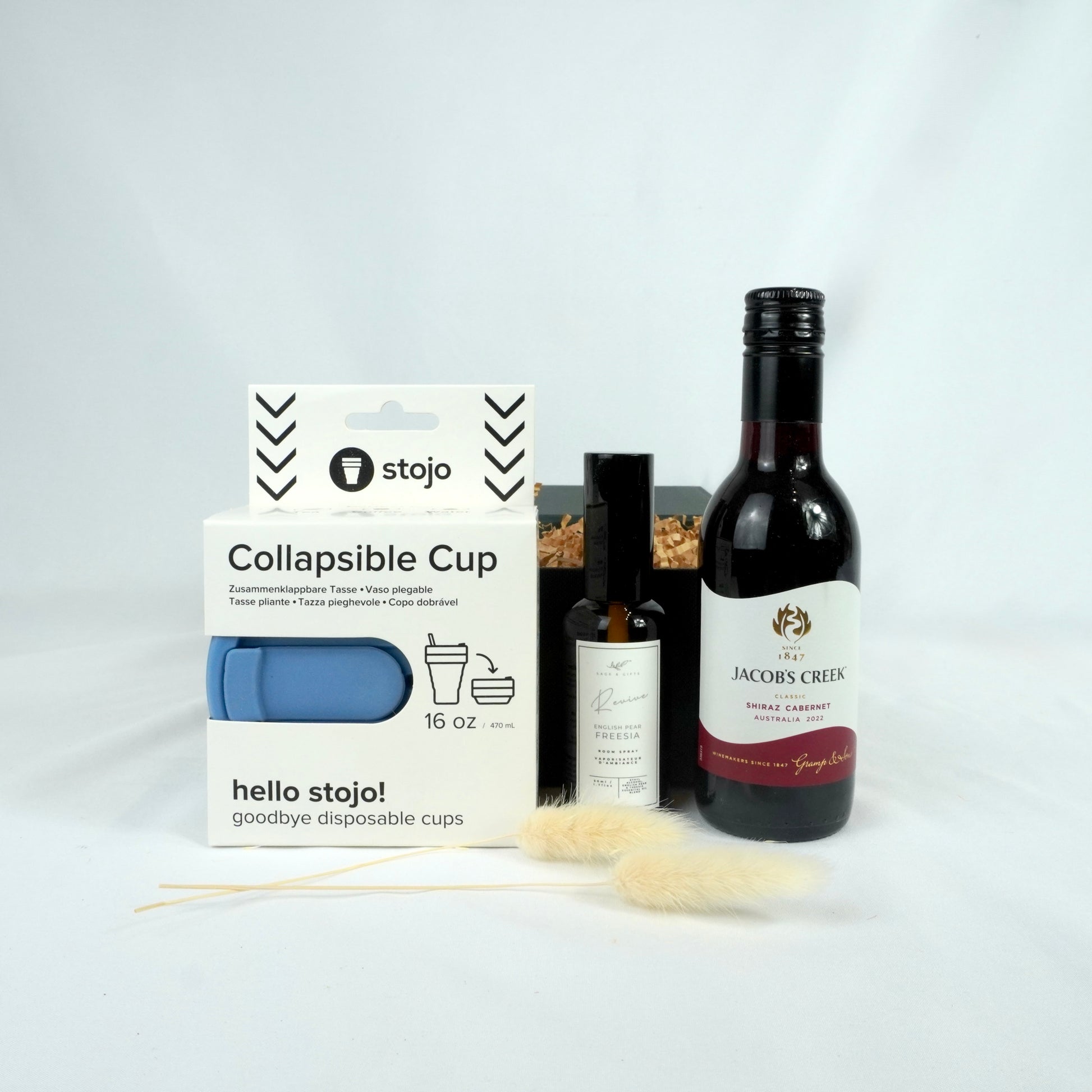 Sometimes, all you need is a little something to hit pause. The Mini Escape is a compact curation of simple pleasures designed to bring a moment of calm to a busy day. This sleek black gift box features a collapsible Stojo cup for coffee on the go, a mini bottle of Jacob’s Creek wine to toast to the little wins, and a refreshing room spray to instantly uplift any space. Thoughtful, stylish, and easy to enjoy — it’s the perfect pick-me-up for anyone who deserves a quick getaway, even if just for a moment.