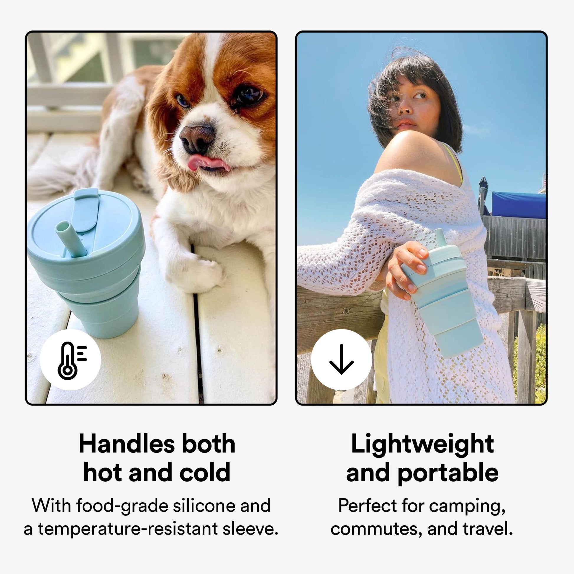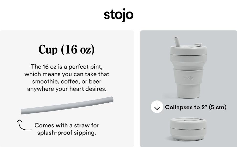 Stojo Biggie Silicone Collapsible Cup, 16oz/470ml Steel