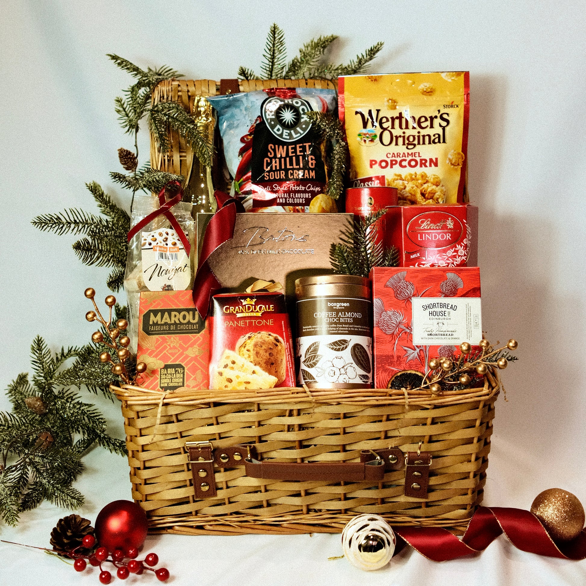 Treat yourself with an array of delights this festive season. Featuring decadent chocolates by Awfully Chocolate and Lindt, scrumptious cookies from Grandma Wild's and Shortbread House of Edinburgh, a rich, classic panettone, a bottle of Bottega Gold, and the list goes on, just like the song!
