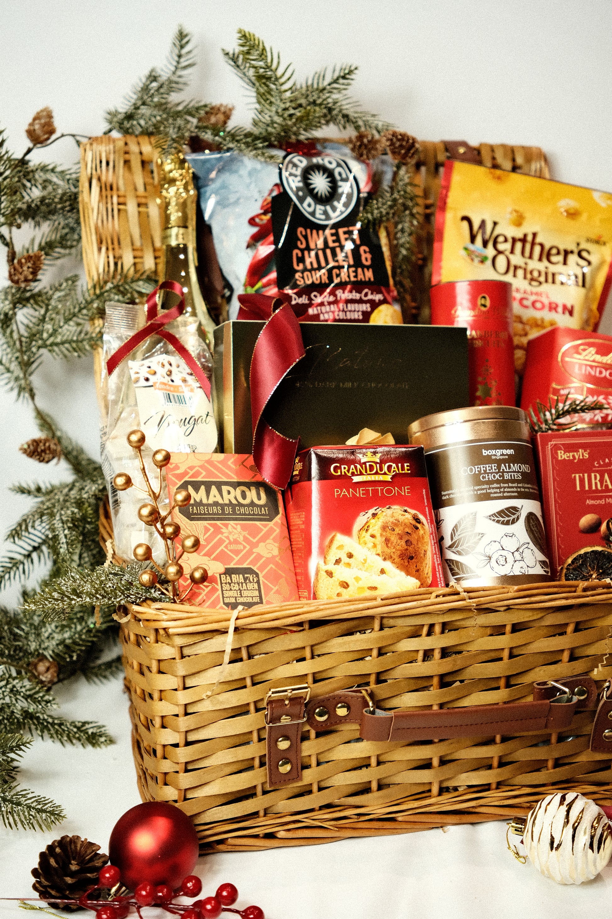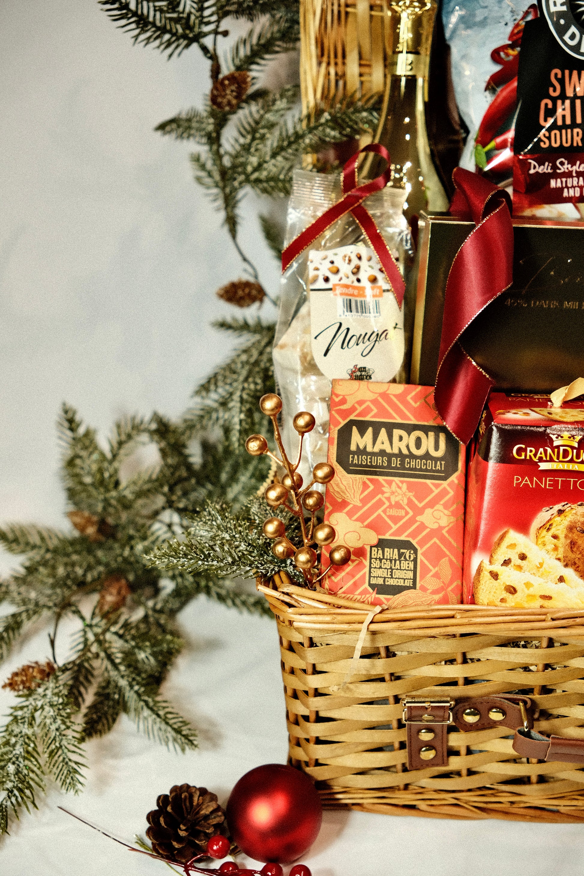 • Wicker Basket with fillers and Christmas elements