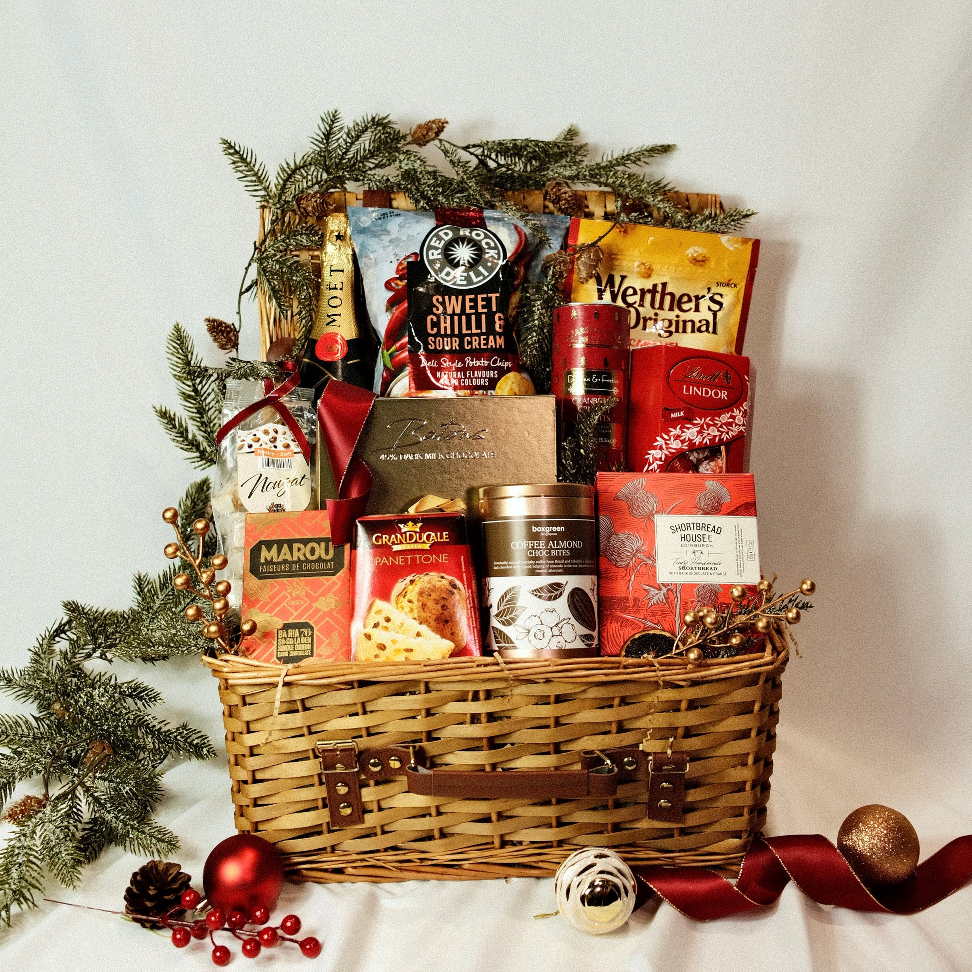 Treat yourself with an array of delights this festive season. Featuring decadent chocolates by Awfully Chocolate and Lindt, scrumptious cookies from Grandma Wild's and Shortbread House of Edinburgh, a rich, classic panettone, a bottle of Moet & Chandon, and the list goes on, just like the song!